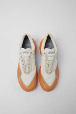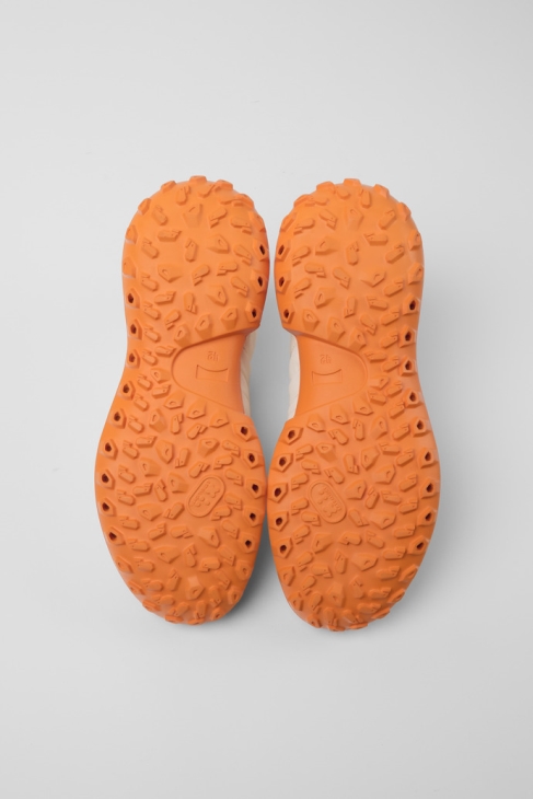 Λευκά και πορτοκαλί ανακυκλωμένα ανδρικά πάνινα παπούτσια PET και δέρμα με τεχνολογία GORE-TEX Surround® και εξωτερικές σόλες XL EXTRALIGHT®. Εμπνευσμένο από τα ελαστικά ποδηλάτων, το CRCLR είναι το παντός εδάφους μας πάνινα παπούτσια που συνδυάζει την τεχνική μας εμπειρία με μια αστική αισθητική.