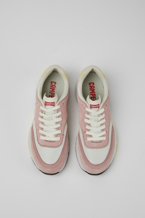 Λευκά και ροζ ανακυκλωμένα γυναικεία πάνινα παπούτσια PET και Nubuck με πατώματα και εξωτερικές σόλες από PU από 70% EVA και 30% καουτσούκ. Τα αθλητικά μας Drift διαθέτουν ελαφριά κατασκευή και σπορ σιλουέτα εμπνευσμένη από τα αθλητικά παπούτσια της δεκαετίας του ’90.