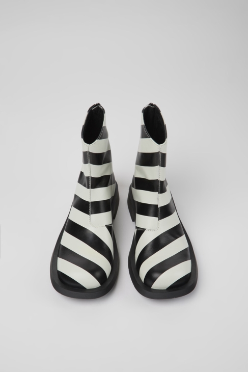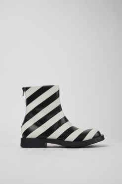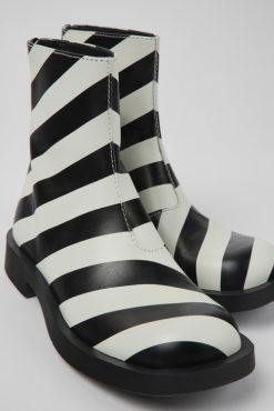 Ασπρόμαυρα δερμάτινα γυναικεία μποτάκια με ρίγες με πατώματα OrthoLite® Recycled™ και εξωτερικές σόλες από καουτσούκ (30% φυσικό, 20% ανακυκλωμένο). Το Classic συναντά το σύγχρονο στο MIL 1978 μας.
