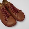 Γυναικεία παπούτσια από μπορντό δέρμα με εξωτερική σόλα TPU (20% ανακυκλωμένα). Ένα εικονίδιο Camper που εξελίσσεται με κάθε εποχή, το Peu προσφέρει λειτουργική απλότητα εμπνευσμένη από το περπάτημα ξυπόλητος. Είναι ραμμένο 360 μοιρών και κατασκευασμένο με τεχνική κατασκευής Strobel, που εγγυάται απαράμιλλη ελαστικότητα και ανθεκτικότητα κάτω από οποιεσδήποτε συνθήκες.