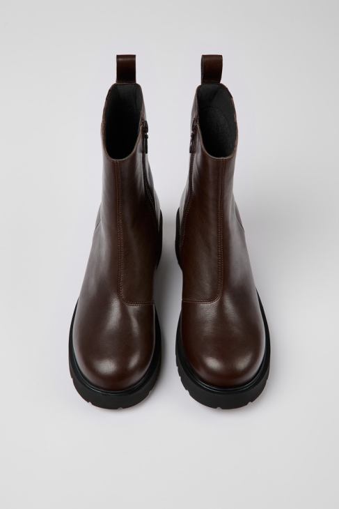 Καφέ δερμάτινες γυναικείες μπότες με φερμουάρ με τεχνολογία GORE-TEX, πατώματα OrthoLite® Recycled™ και εξωτερικές σόλες EVA. Το Milah είναι ένα ογκώδες χειμερινό μποτάκι με ξεχωριστή αστική εμφάνιση.