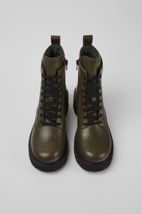 Πράσινες δερμάτινες γυναικείες μπότες με κορδόνια με πατώματα OrthoLite® Recycled™ και εξωτερικές σόλες EVA. Το Milah είναι ένα ογκώδες χειμερινό μποτάκι με ξεχωριστή αστική εμφάνιση.