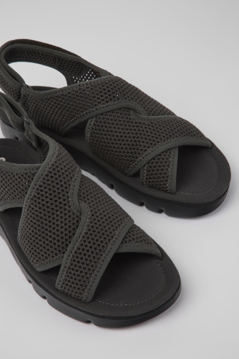 Σκούρο γκρι υφασμάτινα γυναικεία σανδάλια με εξωτερικές σόλες XL EXTRALIGHT® Organix™ 3.0 (30% βιοκυκλικές ενώσεις). Ισπανικά για “κάμπια”, τα ανδρικά σανδάλια Oruga προσφέρουν εύκαμπτες, ελαφριές σόλες και αστική καλοκαιρινή εμφάνιση.