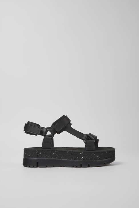 Μαύρα δερμάτινα γυναικεία σανδάλια με ενδιάμεση σόλα 100% EVA (20% ανακυκλωμένη), εξωτερικές σόλες XL EXTRALIGHT® (51% ανακυκλωμένα) και σύστημα κλεισίματος με γάντζο και βρόχο. Τα σανδάλια μας Oruga Up σχεδιάστηκαν για τις καλοκαιρινές μέρες και διαθέτουν χοντρή χαρακτηριστική σόλα για μεγαλύτερο ύψος και μοναδική εμφάνιση.