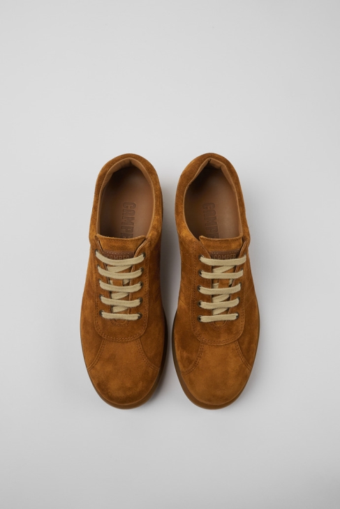 Καφέ γυναικεία αθλητικά παπούτσια Nubuck με σόλες από καουτσούκ. Το Pelotas Ariel είναι το πιο εμβληματικό μας στυλ Camper. Με μια αναμφισβήτητη εξωτερική σόλα εμπνευσμένη από τον αθλητισμό που αποτελείται από 87 σφαίρες, κάθε ζευγάρι είναι χειροποίητο από ευρωπαϊκά δέρματα που είναι ραμμένα 360o στην αρχική εξωτερική σόλα από καουτσούκ.