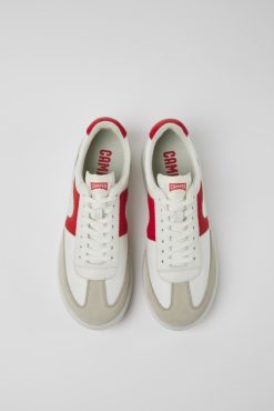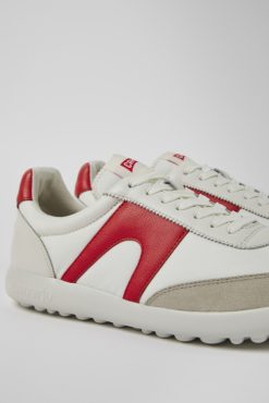 Λευκά και κόκκινα ανδρικά πάνινα παπούτσια από ύφασμα και δέρμα με αφαιρούμενα πατώματα PU και εξωτερικές σόλες EVA. Με το ανανεωμένο σχήμα και την απαλή εξωτερική σόλα, το βελτιωμένο Pelotas XL παρουσιάζει μια νέα προσέγγιση στα αστικά υποδήματα.