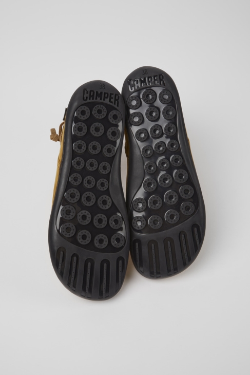 Ανοιχτό καφέ γυναικεία μποτάκια Nubuck με εξωτερική σόλα TPU (20% ανακυκλωμένα). Ένα εικονίδιο Camper που εξελίσσεται με κάθε εποχή, το Peu προσφέρει λειτουργική απλότητα εμπνευσμένη από το περπάτημα ξυπόλητος. Είναι ραμμένο 360 μοιρών και κατασκευασμένο με τεχνική κατασκευής Strobel, που εγγυάται απαράμιλλη ελαστικότητα και ανθεκτικότητα κάτω από οποιεσδήποτε συνθήκες.