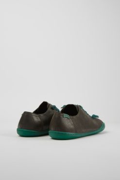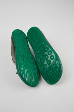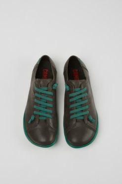 Γκρι δερμάτινα γυναικεία παπούτσια με σόλες TPU (20% ανακυκλωμένα). Ένα εικονίδιο Camper που εξελίσσεται με κάθε εποχή, το Peu προσφέρει λειτουργική απλότητα εμπνευσμένη από το περπάτημα ξυπόλητος. Είναι ραμμένο 360 μοιρών και κατασκευασμένο με τεχνική κατασκευής Strobel, που εγγυάται απαράμιλλη ελαστικότητα και ανθεκτικότητα κάτω από οποιεσδήποτε συνθήκες.