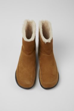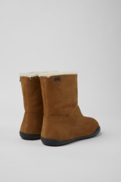 Καφέ γυναικεία μποτάκια Nubuck με 20% ανακυκλωμένες σόλες TPU. Ένα εικονίδιο Camper που εξελίσσεται με κάθε εποχή. Το Peu είναι η λειτουργική απλότητα που εμπνέεται από το περπάτημα ξυπόλητος. Είναι ραμμένο 360 μοιρών και κατασκευασμένο με τεχνική κατασκευής Strobel, που εγγυάται απαράμιλλη ελαστικότητα και ανθεκτικότητα κάτω από οποιεσδήποτε συνθήκες.