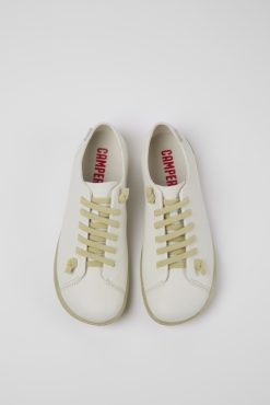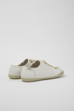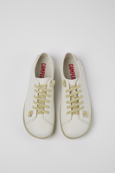 Λευκά δερμάτινα γυναικεία παπούτσια με αφαιρούμενα πατώματα PU και εξωτερικές σόλες TPU (20% ανακυκλωμένα). Ένα Camper Icon που εξελίσσεται με κάθε εποχή. Το Peu είναι η λειτουργική απλότητα που εμπνέεται από το περπάτημα ξυπόλητος. Είναι ραμμένο 360 μοιρών και κατασκευασμένο με τεχνική κατασκευής Strobel, που εγγυάται απαράμιλλη ελαστικότητα και ανθεκτικότητα κάτω από οποιεσδήποτε συνθήκες.