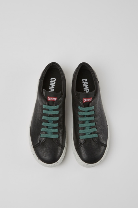 Μαύρα δερμάτινα γυναικεία Sneakers με ελαστικά κορδόνια και εξωτερικές σόλες EVA (20% ανακυκλωμένα). Το Peu Touring είναι μια πιο σπορ έκδοση του εμβληματικού Peu μας, ενισχυμένη με τεχνικές αναβαθμίσεις και αναγνωρίσιμη καμπύλη στην εξωτερική σόλα.