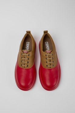 Runner καφέ και κόκκινο δερμάτινα αθλητικά παπούτσια για άνδρες Camper νέες αφίξεις