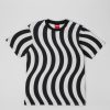 Μπλουζάκι Unisex από μπεζ και κίτρινο οργανικό βαμβάκι με κυματιστό ριγέ σχέδιο.